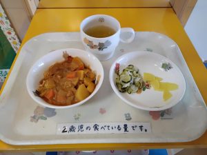 和田母子福祉会 さくら保育園 > 今日の献立 > お昼は カレーライス・コールスローサラダ・福神漬(乳児はたくあん)