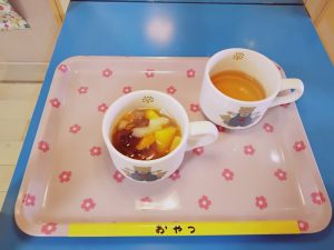 今日のお昼は 食パン・はんぺんフライ・コロコロサラダ・玉ねぎのスープ
