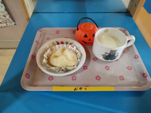 おやつは 栗の蒸しパン・スキムミルク