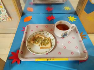 今日のお昼は ごはん・鮭の味噌マヨ焼き・きんぴらごぼう・けんちん汁