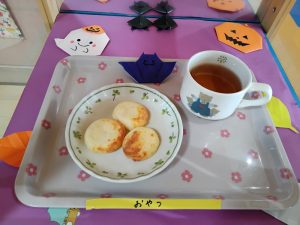 おやつは もちもちチーズパン・麦茶