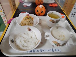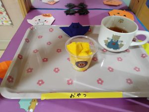 おやつは 👻かぼちゃプリン👻麦茶👻