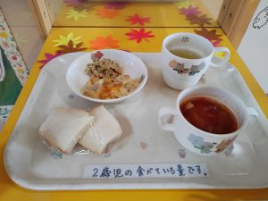 和田母子福祉会 さくら保育園 > 今日の献立 > 今日のお昼は 食パン・ポテトグラタン・もやしと鶏のさっぱり和え・野菜スープ