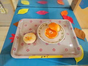 おやつは みかん・せんべい