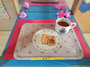 おやつは バナナケーキ・麦茶