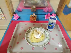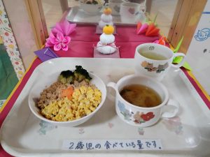 🍰今日はお誕生日会🍰 鶏そぼろ丼・ブロッコリーマヨ・わかめのみそ汁