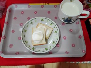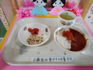 今日のお昼は ハヤシライス・ツナサラダ・ミニトマト
