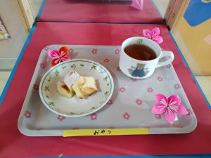 おやつは パンプディング・麦茶