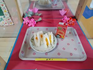 おやつは 🎂フルーツサンド・りんごジュース🎂