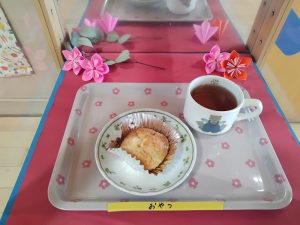 おやつは ツナマヨ蒸しパン・麦茶
