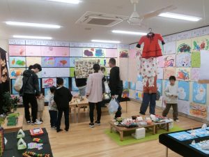 子どもたちが、日々楽しんで描いた絵や普段遊んでいる玩具や粘土等で作った製作が飾られていました。